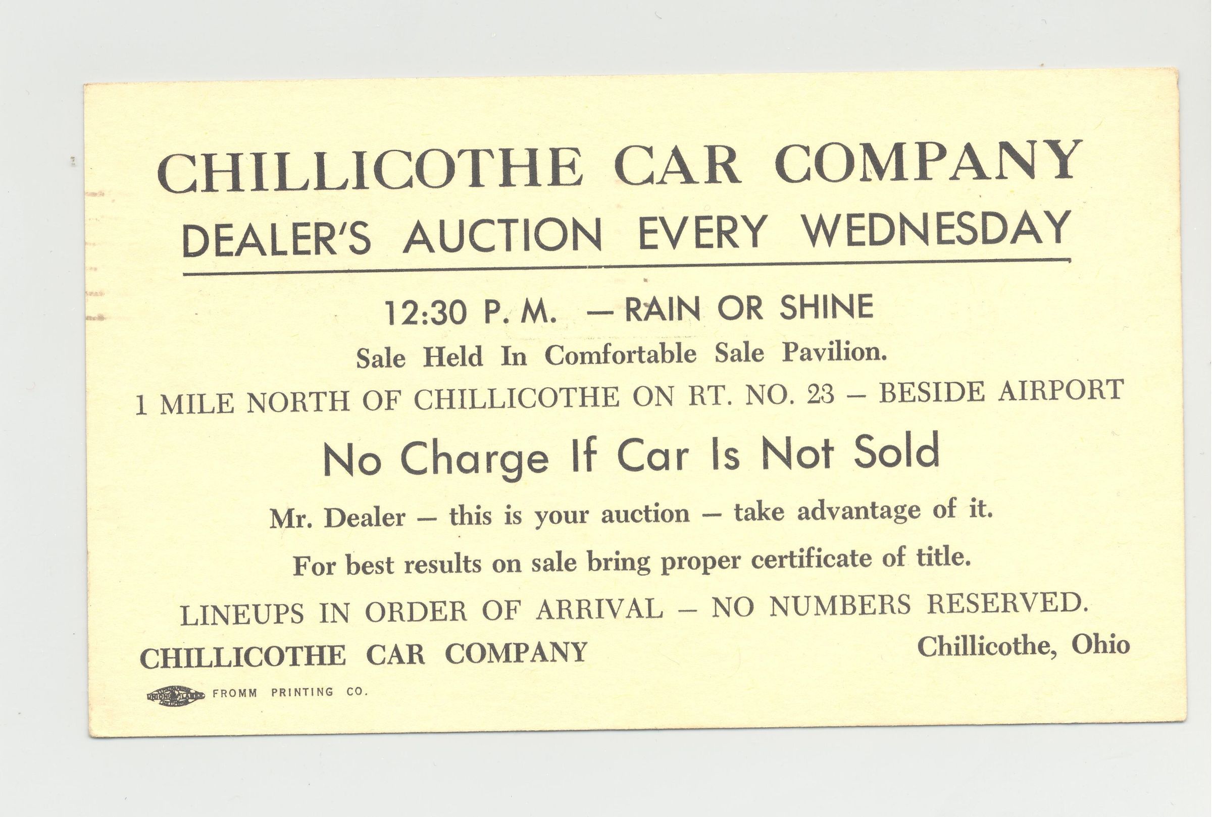 PSTCD, CAR, 1949, OH. CHILLICOTHE CAR COMPANY. "MR. DEALER - THIS IS YOUR AUCTION - TAKE ADVANTAGE OF IT."Created By
