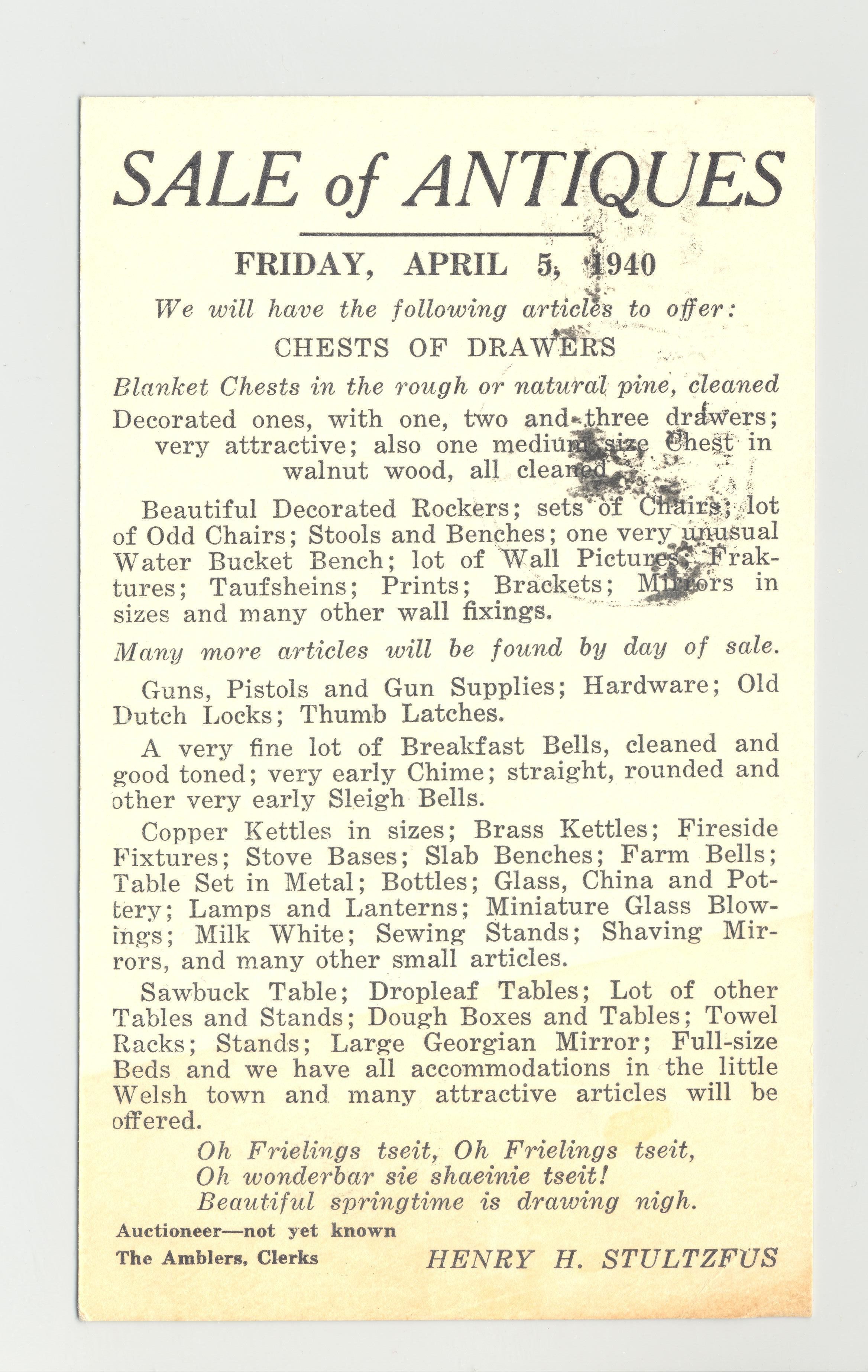 PSTCD, 1940, ANTIQUES, PA. HENRY STULTZFUS