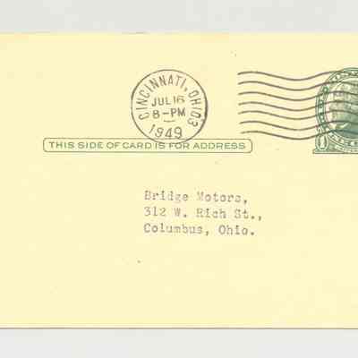 PSTCD, AUTO, 1949, OH. PAT PATTERSON, AUCTIONEER, PATSY'S AUTO SALES, INC.