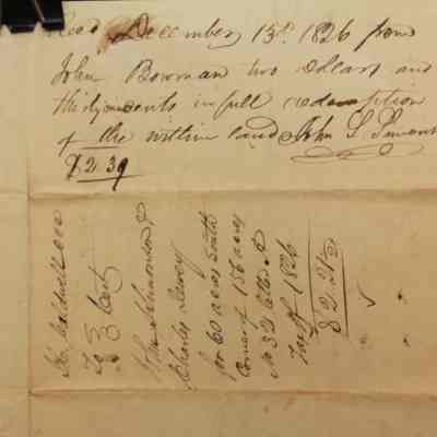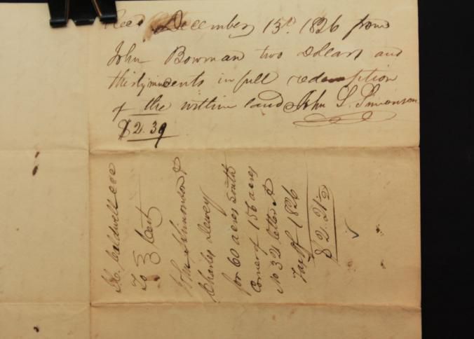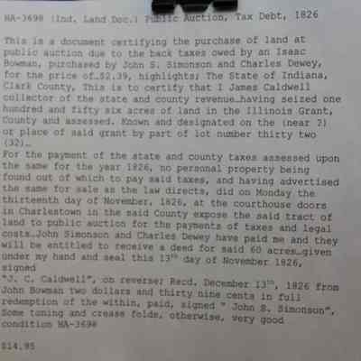 DOC, 1826, LAND, IN. TAX DEBT AUCTION DOCUMENTING SALE OF THE LAND 7.5" X 12"