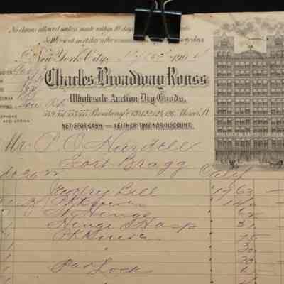 INVOICE, DRY GOODS,1904, CA. CHARLES BROADWAY ROUSS WHOLESALE AUCTION
