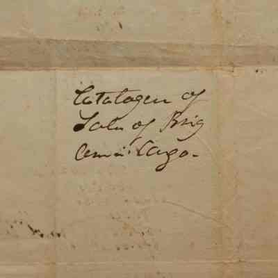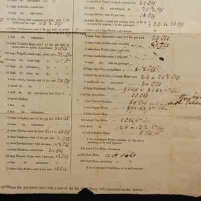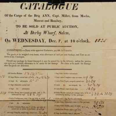 CAT, CARGO OF BRIG ANN, MA, 1825. WITH WRITTEN IN QTY'S SPICES, ANIMAL HIDES, FRUITS 11" X 13"
