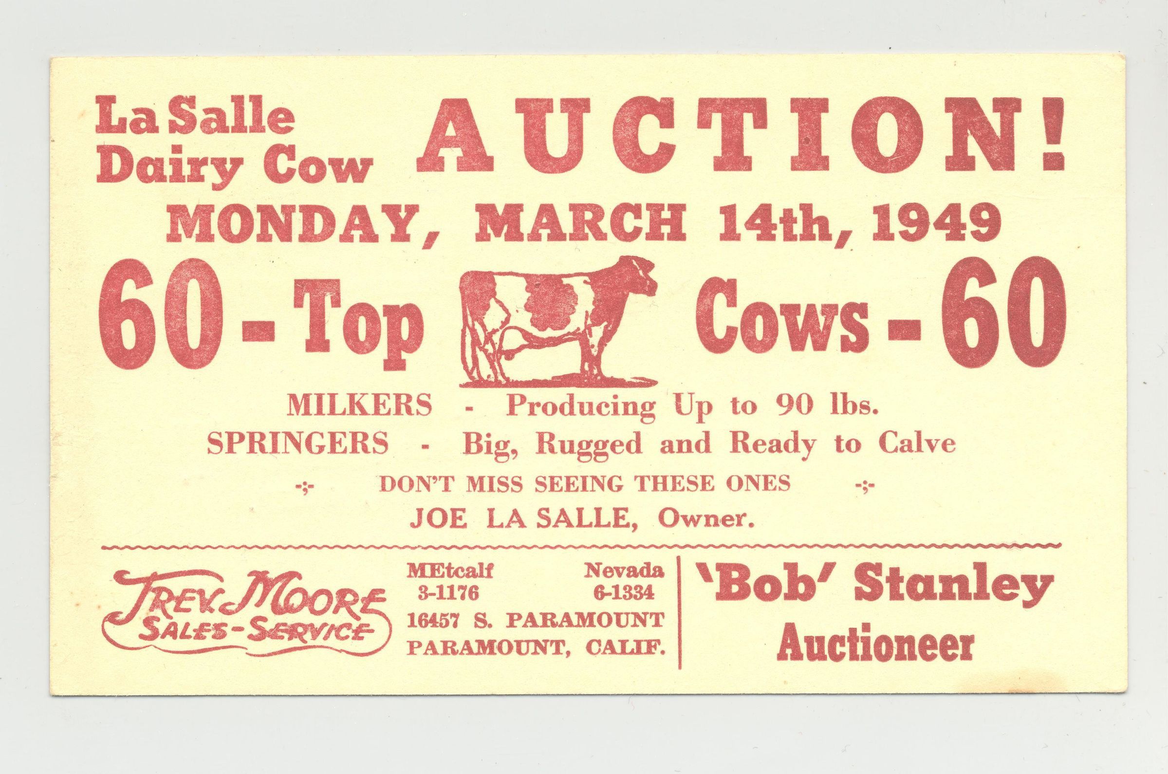 PSCD, PARAMOUNT, CA, 1949, ADV. - 60 TOP COWS. TREV. MOORE SALES & SERVICE, "BOB" STANLEY AUCTIONEER.Created By