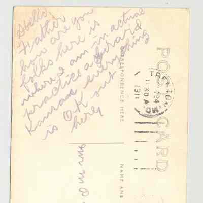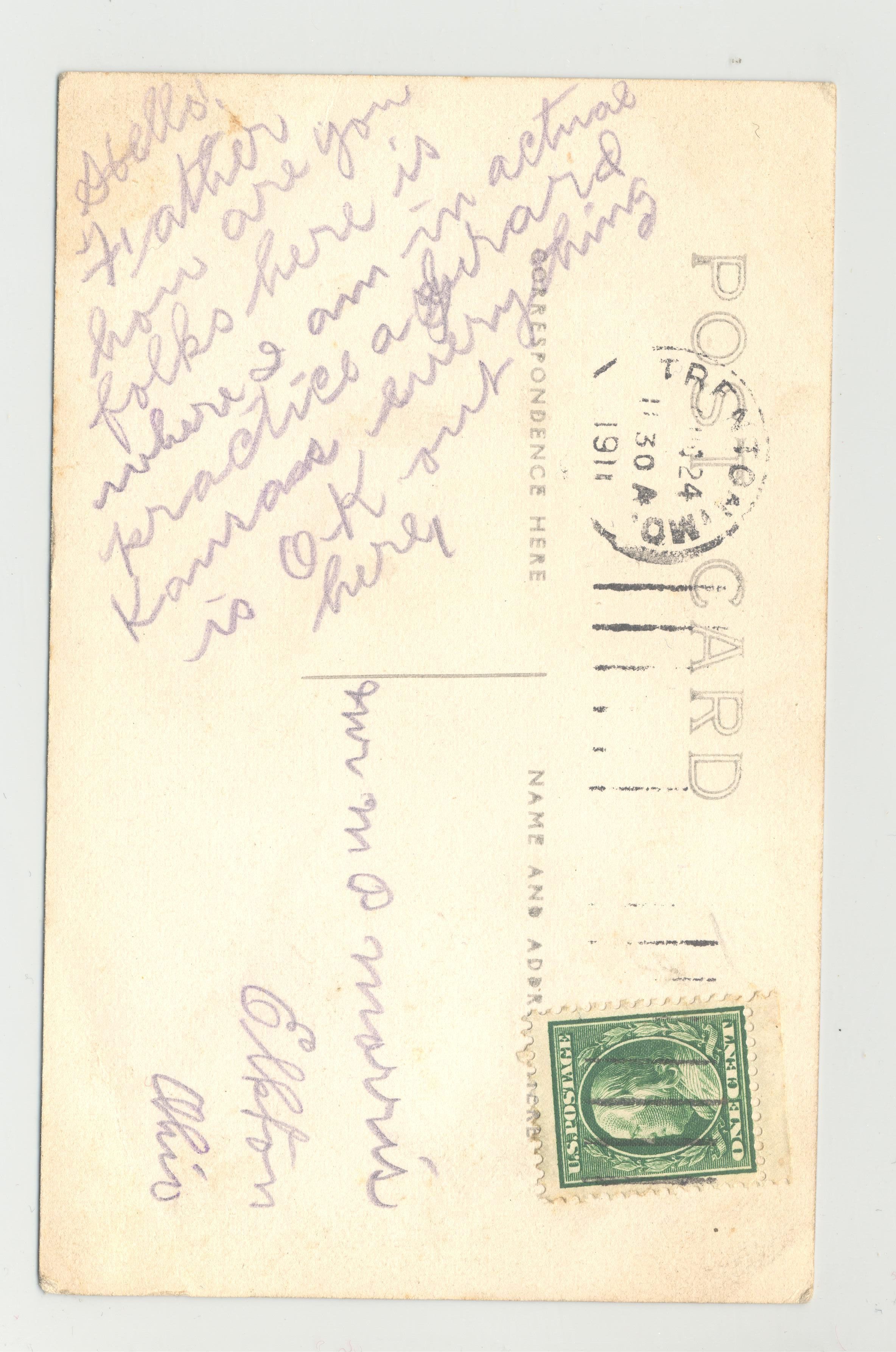 PSTCD, GREAT AUCTION STREET SCENE. THIS MAY BE AN AUCTION SCHOOL POSTCARD AS THE SENDER IS TALKING ABOUT "PRACTICING OUT HERE IN KANSAS." SEVERAL AUCTIONEER'S SELLING AT ONE TIME.Created By