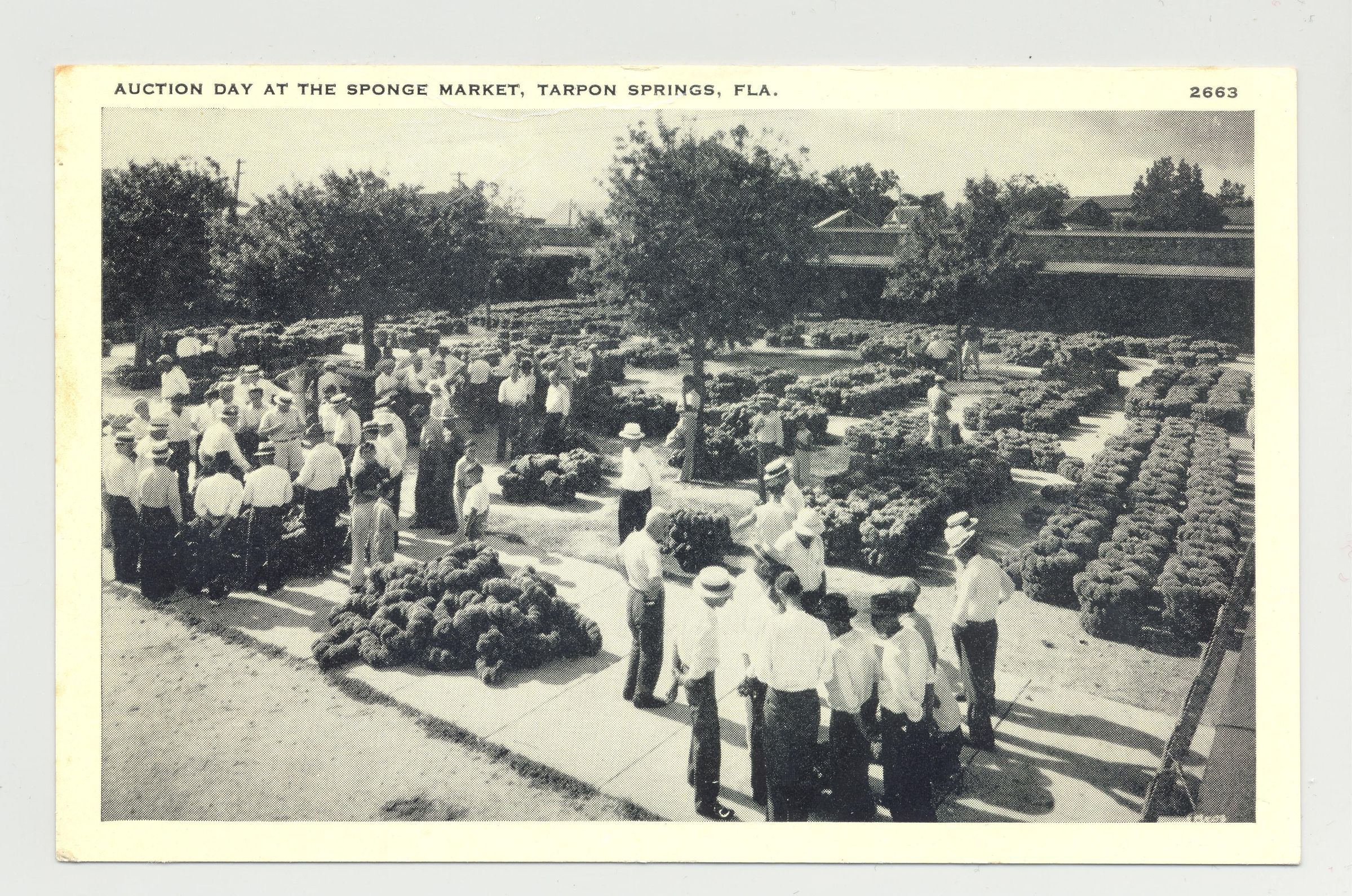 PSTCD, TARPON SPRINGS, FL "AUCTION DAY AT THE SPONGE MARKET." GREAT SCENE.