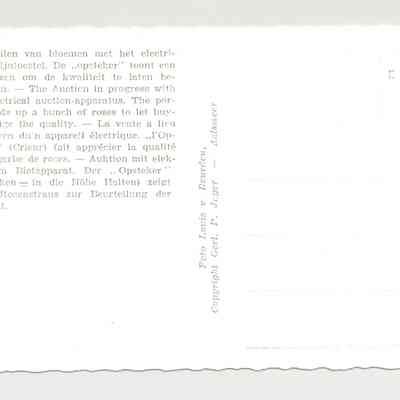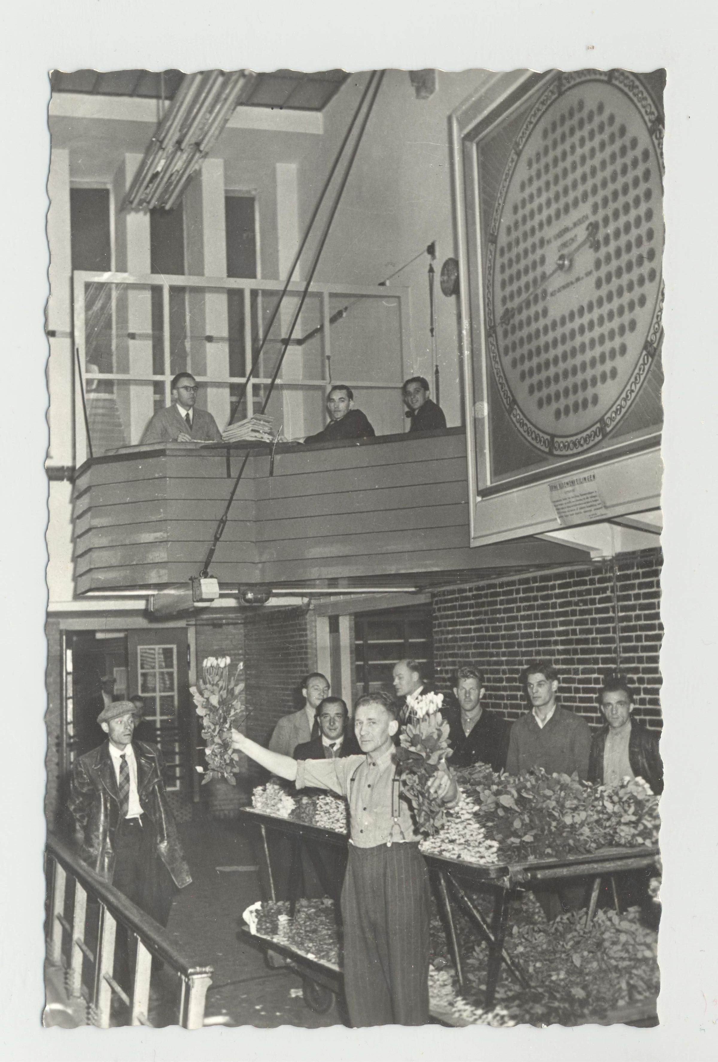 PSTCD, VIEW OF THE DUTCH FLOWER AUCTION. NOTE THE CLOCK ABOVE. THIS WAS A WHOLESALE MARKET. WHEN A DEALER PRESS HIS BUTTON AND STOPPED THE CLOCK ON THE WAY DOWN, THE LOT WAS SOLD A THAT BID. THE CLOCK RESETS AND THE AUCTION STARTS WITH THE NEXT LOT.Created By