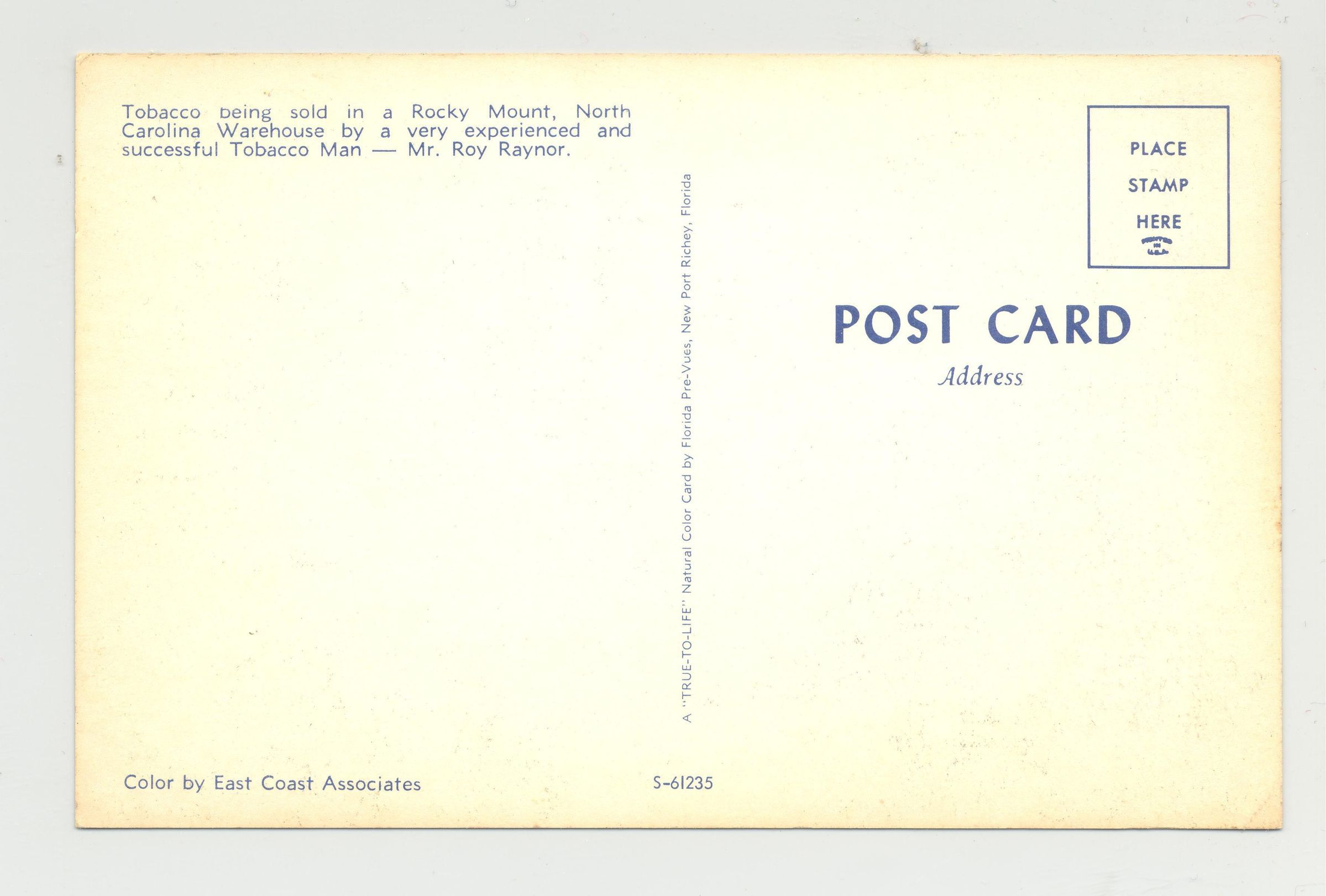 PSTCD, NC, TOBACCO. "TOBACCO BEING SOLD IN A ROCKY MOUNT, NORTH CAROLINA WAREHOUSE BY A VERY EXPERIENCED AND SUCCESSFUL TOBACCO MAN - MR. ROY RAYNOR."Created By