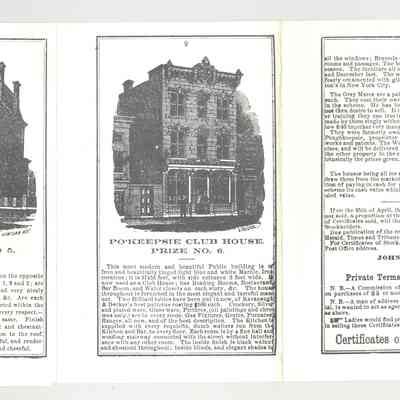 CAT, PROPERTY STOCK CERTIFICATES, 1872, PO'KEEPSIE, NY. 5.5" X 3.5" FOLDED DIM. MILL ST BROWNSTONES IN POUGHKEEPSIE. JOHN GAGER, MANAGER. W.C. FONDA, TREASURER, DUTCHESS COUNTY.Created By