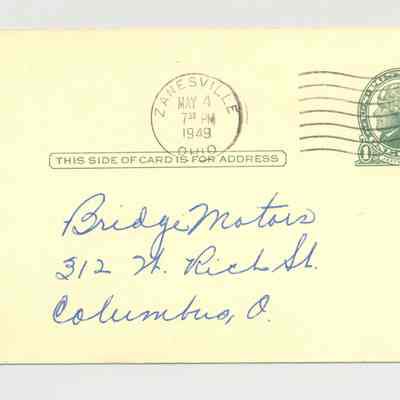 PSTCD, 1949, AUTO, OH. ZANESVILLE, PARTIAL LIST CARS SOLD. ART GRANDI, AUCTIONEER