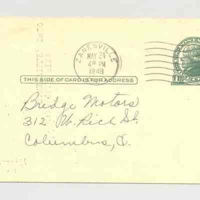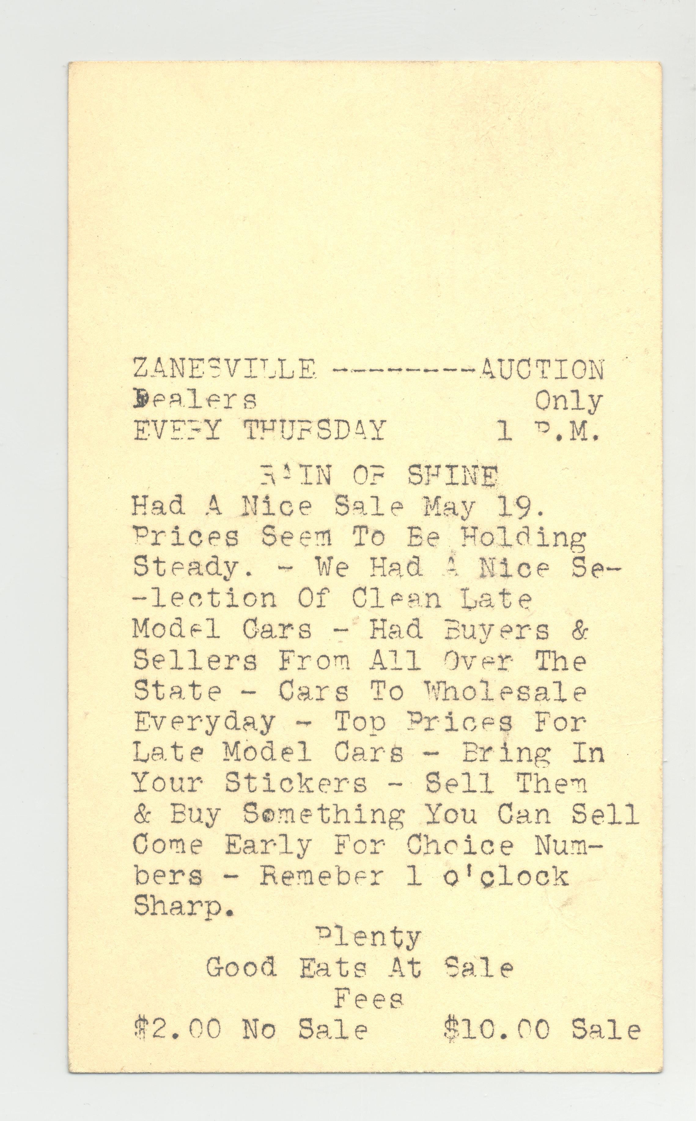 PSTCD, AUTO, 1949, OH. TYPED INFO FOR DEALER AUCTION.