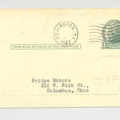 PSTCD, AUTO, 1947, ERLANGER, KY. COL. R.V. MARTIN, AUCTIONEER