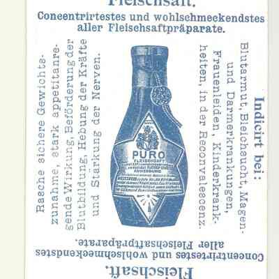 TRCD, ADV, FORIEGN. COLOR SCENE MEN DRINKING. "FLEISCHSAFT... PURO"