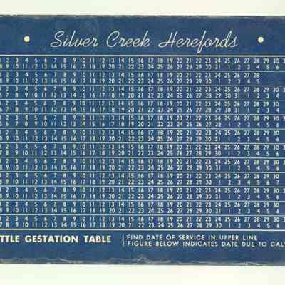 PSTCD, CATTLE, 1942, LAMINATED, TX. ON BACK IS CATTLE GESTATION TABLE