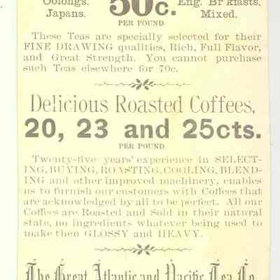ADV CARD, TEA, NY. 1884 COPYRIGHT, THE YOUNG AUCTIONEER, "GOING GOING GONE!" BABY POUT AND CRY. 8 1/4" X 4"Created By