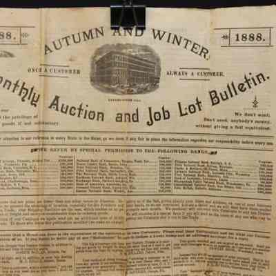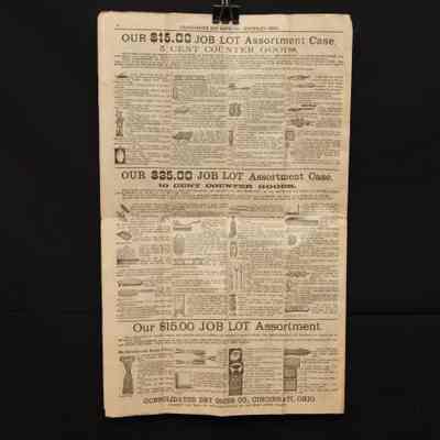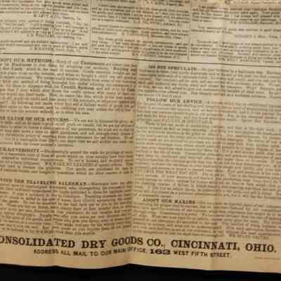 ADV, NEWSPAPER, 1888, OH. 8 PP. 12" X 20" AUTUMN & WINTER MONTHLY AUCTION & JOB LOT BULLETIN. PUT OUT BY CONSOLIDATED DRY GOODS COL, CINCINNATI, OH.Created By