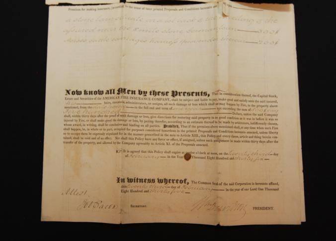 DOC, INSURANCE POLICY, FIRE, 1835. IN 2 PIECES.
