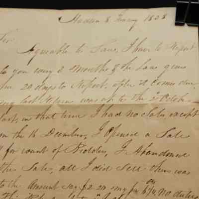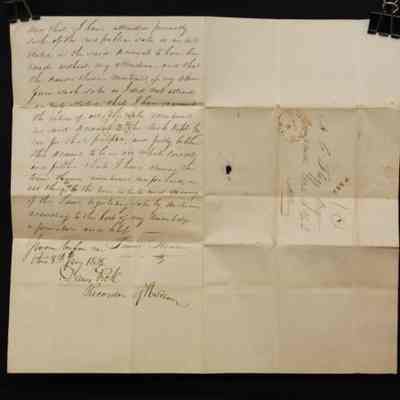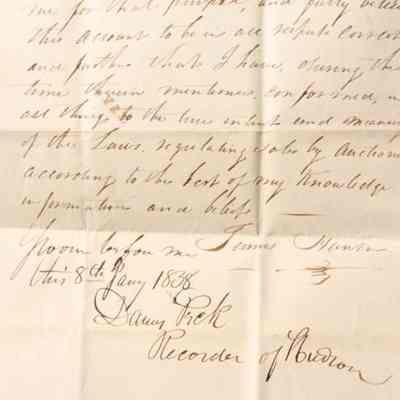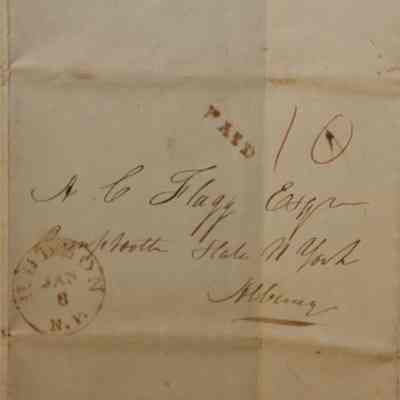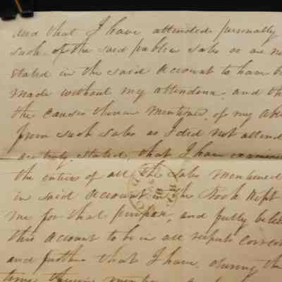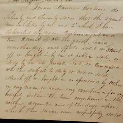 DOC, LETTER, 1838, NY. JAMIS HANSEN AUCTIONEER, SETTLEMENT STATEMENT, 13" X 7 3/4" FOLDED PAPER