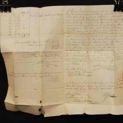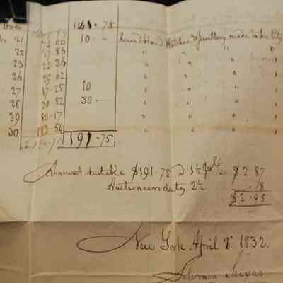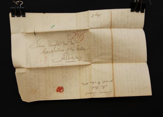 DOC, 1832, AUCTION SETTLEMENT, ALBANY, NY. SOLOMON SEIXAS AUCTIONEER 8" X 12 1/2"