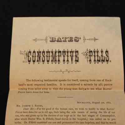 BSCD, FLYER, 1881, BATES' CONSUMPTIVE PILLS, MA. TESTIMONIAL FOR PILLS. BSCD FOR JOSEPH BATES, DEALER IN TIN & HOUSE FURNISHING GOODS.Created By