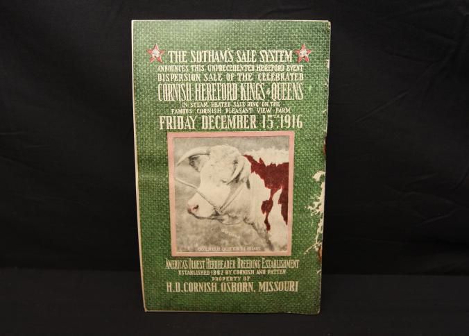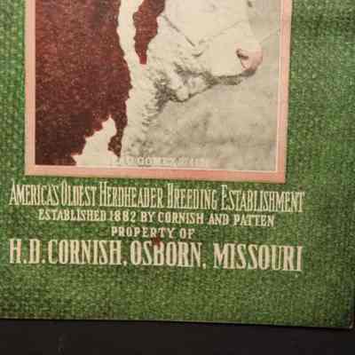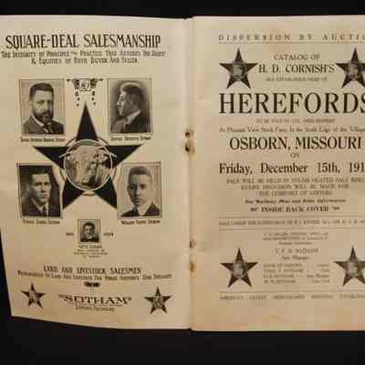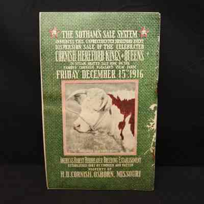 CAT, CATTLE, 1916, MO. H.D. CORNISH'S OLD EST. HERD OF HEREFORDS, COL. FRED REPPERT, AUCT. B/W PHOTOS OF MOST LOTS, 112 PP. 8" X 5 1/2"Created By