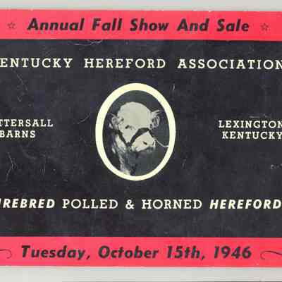 CAT, CATTLE, 1946, KY. KY HEREFORD ASSOC. ANNUAL FALL SHOW & SALE, LEXINGTON. 31 PP. 8" X 5 1/4"Created By