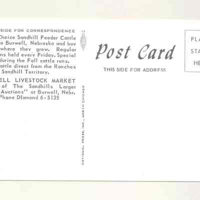 PSTCD, CATTLE, BURWELL, NE. "A REGULAR SANDHILL FEEDER AUCTION" PHOTO OF HERDED CATTLE, INDOOR AUCTION. NO DATECreated By