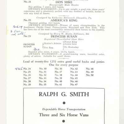 CAT, HORSE, 1943, PA. "ELECTRIC LIGHT SALE MONDAY NIGHT" COL. HOWARD HARRIS, AUCTIONEER. 6" X 10"Created By