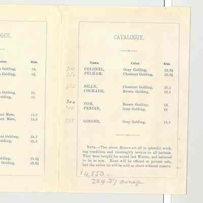 CAT, HORSE, 1882, NY. WM EASTON, AUCT. AMERICAN HORSE EXCHANGE, LTD. THE HORSES OF THE NY AND PELHAM COACH "TALLY-HO" 4 3/4" X 6 3/4"Created By