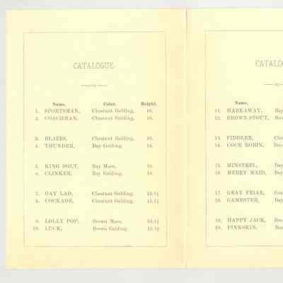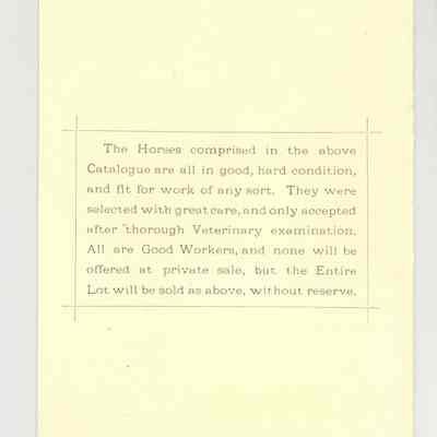 CAT, HORSE, 1882, NY. WM. EASTON, AUCT. THE "TANTIVY" COACH HORSES BY THE AMERICAN HORSE EXCHANGE, LTD. UNRESERVED. 4 3/4" X 6 3/4"Created By