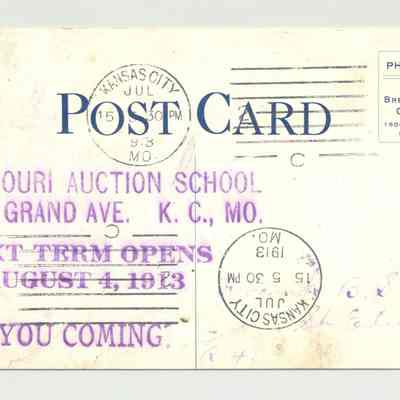 PSTCD, 1913, AUCTION SCHOOL, MO. "MO AUCTION SCHOOL STUDENTS SALES AUG TERM TRENTON, MO. 1911.