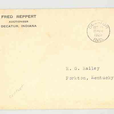 LETTER, ENV. AUCTION SCHOOL, 1926, IN. REPPERT'S SCHOOL OF AUCTIONEERING LIVE STOCK JUDGING AND PEDIGREE STUDY.Created By