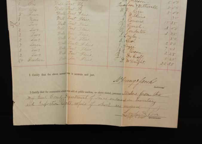 DOC, ACCOUNT SALES, 1866, TX. SIGNED MCCREARY & JACOBS, AUCTS.