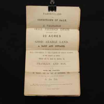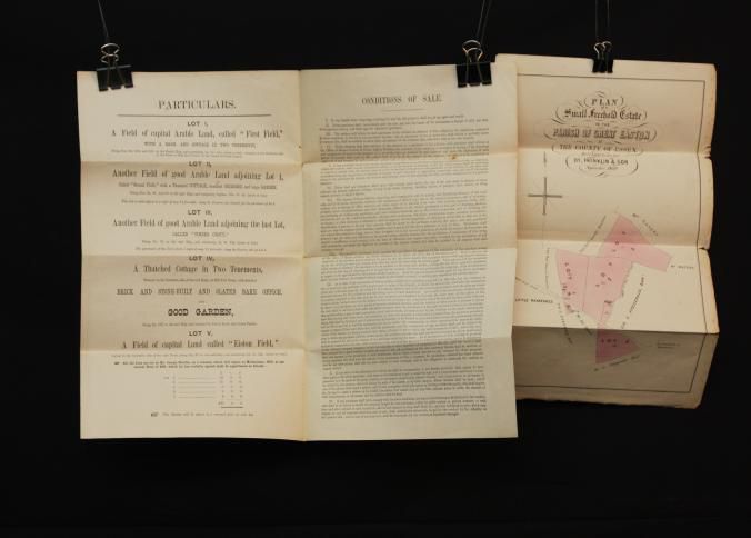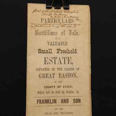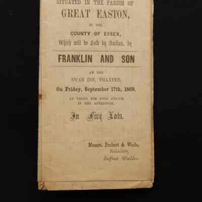 PARTICULARS, ESSEX ESTATE, 1869, ENGLAND. FRANKLIN & SON, AUCTS. INCL PLAN OF THE ESTATE, IN PARISH OF GREAT EASTON, ESSEX COUNTY.Created By