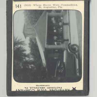 PHOTO, GLASS, FL. NO DATE. "WHERE SLAVES WERE COMMODITIES, ST AUGUSTINE, FLA" KEYSTONE VIEW CO. FACTORIES, MEAOVILLE, PA. COPYRIGHTED. 4" X 3 1/4"Created By