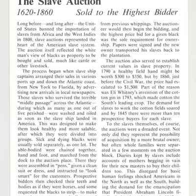 CARD & ILLUSTRATION, PUBL. 1979, ILLUS. CHICOGO HIST. SOC. "THE SLAVE AUCTION 1620 - 1860, SOLD TO THE HIGHEST BIDDER" HISTORICAL ACCOUNT OF SLAVERY.Created By