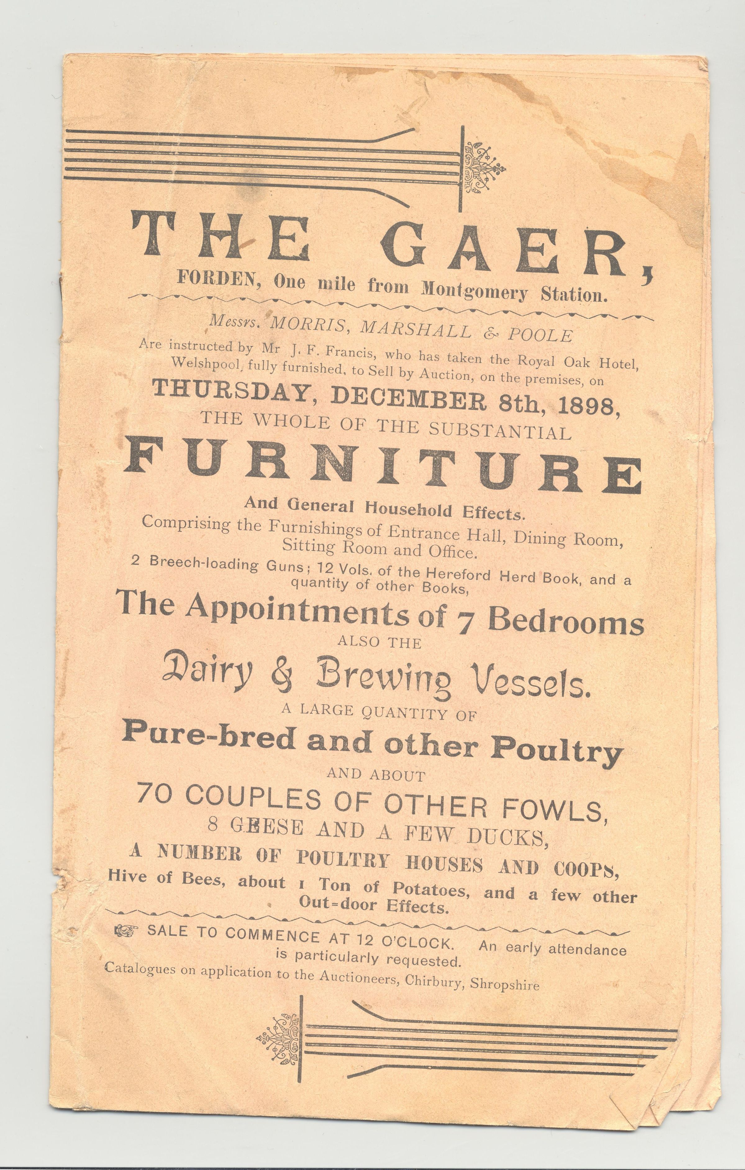 CAT, 1898, ESTATE, ENGLAND? POULTRY, FURNITURE, HOUSEHOLD, FARM. 12PP. 5" X 8"