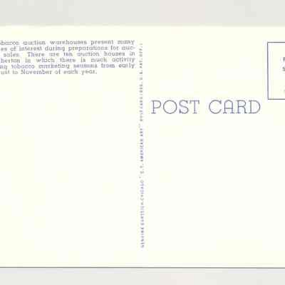 PSTCD, TOBACCO, NC. NO DATE. COLOR PRINT. "UNLOADING TOBACCO FOR AUCTION, LUMBERTON, NC."