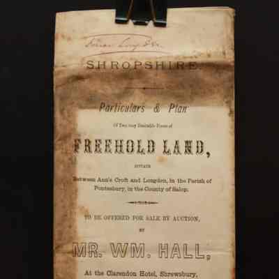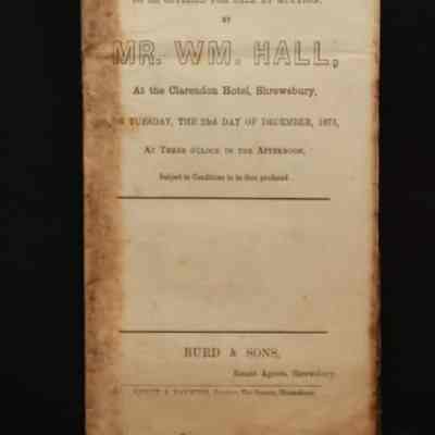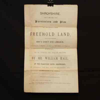 PARTICULARS, LAND, ENGLAND, 1873. SHROPSHIRE. MR WILLIAM HALL, AUCT. 11" X 17"