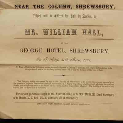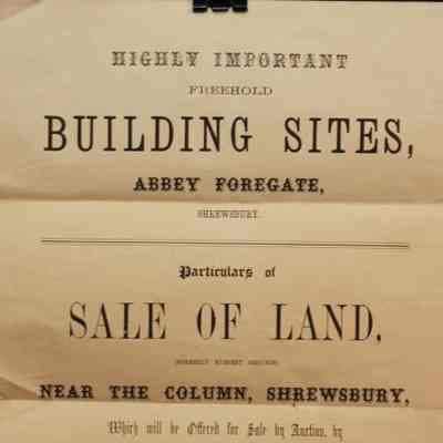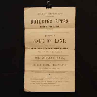 PARTICULARS, BLDG SITES, 1867, SHREWSBURY. MR. WILLIAM HALL, AUCT. 11" X 17"