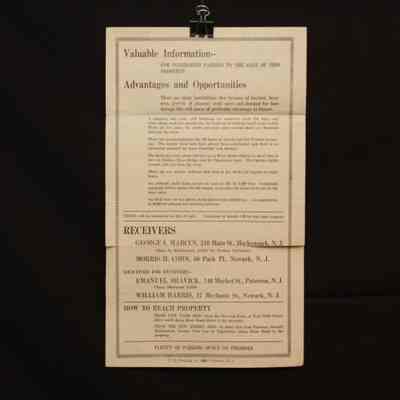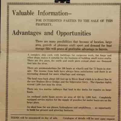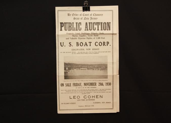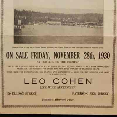 FLYER, 1930, LAND, NJ. WATERFRONT AND SHIPYARD. LEO COHEN, LIVE WIRE AUCTIONEER. 10 3/4" X 17"