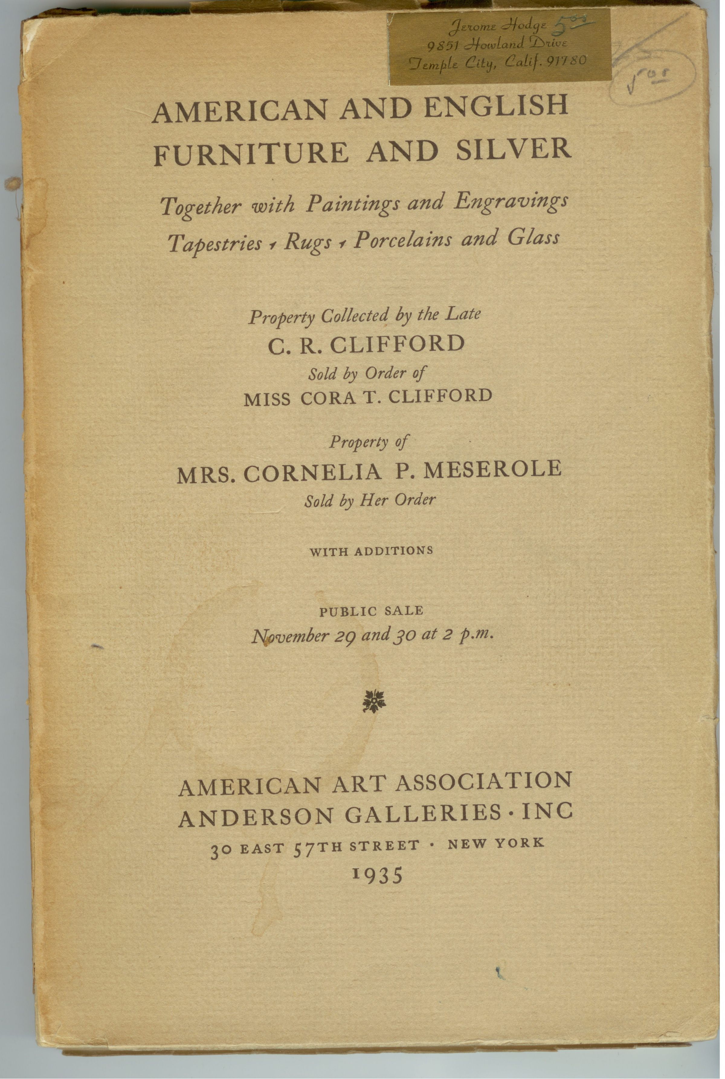 CAT, AMERICAN AND ENGLISH FURNITURE, 1935, NY. AMERICAN ART ASSOC., ANDERSON GALLERIES. 136 PP, 6 1/4" X 9 1/4" COVER DETACHEDCreated By