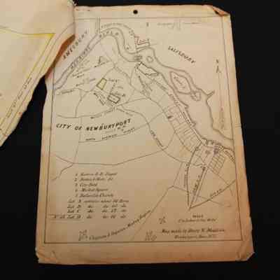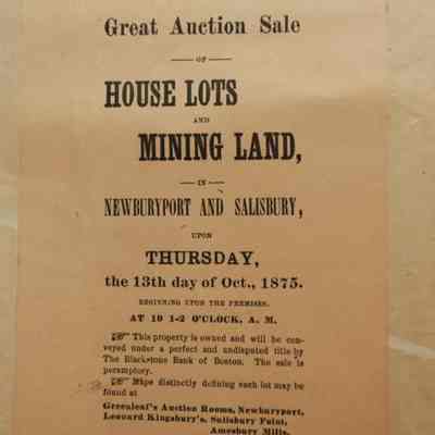 PARTICULARS, REAL ESTATE, 1875, MA. HOUSE LOTS AND MINING LAND IN NEWBURYPORT AND SALISBURY, MA. 4 PP MAPS AND FLYER 10" X 12 1/2"Created By