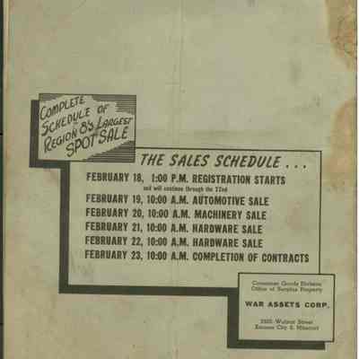 CAT, AUTO, 1946, MO. THREE IN ONE SPOT SALE, ST. LOUIS, WAR ASSETS CORP. 38 PP, 8 1/2" X 11"