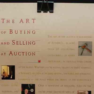ADV CAT, AUCTION HALL, MODERN, NY. SOTHEBY'S, FOUNDED 1744. "THE ART OF BUYING AND SELLING AT AUCTION" 20 PP, 9" X 11 1/2"Created By