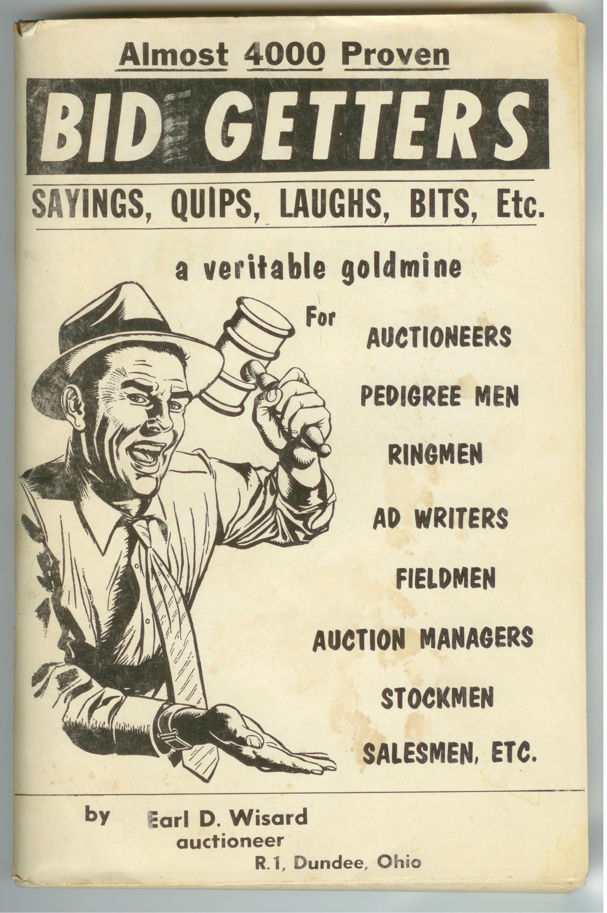 BKLT, BID GETTERS, 1973, OH. "ALMOST 4000 PROVEN BID GETTERS: SAYINGS QUIPS, LAUGHS, BITS, ETC." BY EARL D. WISARD, AUCTIONEER. APPR. 60-80 PP, 6 1/4" X 9 1/4"Created By