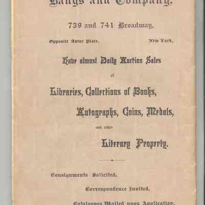 CAT, BOOKS, 1889, NY. BANGS & CO, AUCTS. A FEW PRICES NOTED. 103 PP. 6" X 9.5"