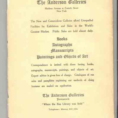 CAT, AMERICANA, 1917, NY. MANY ITEMS FROM 1600'S THE ANDERSON GALLERIES, 118 PP. 6" X 9"