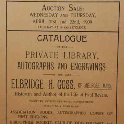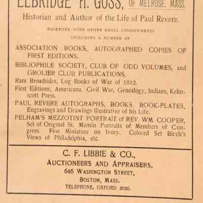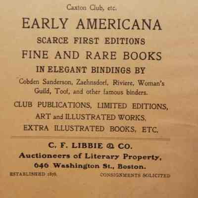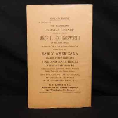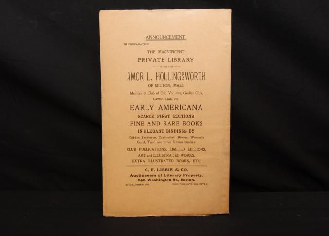 CAT, AUTOGRAPHS, 1909, MA. ENGRAVINGS, BOOKS. C.F. LIBBIE & CO, AUCTS. 141 PP. 6 1/2" X 9 1/2"