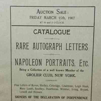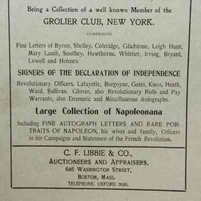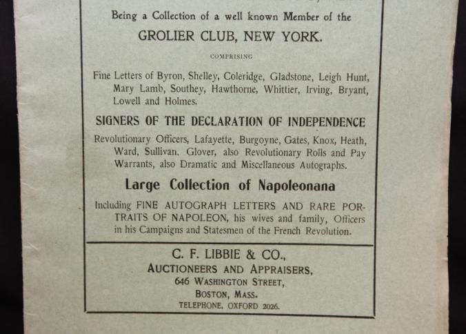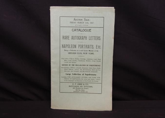 CAT, AUTOGRAPH LETTERS, 1907, MA. NAPOLEON COLLECTION PORTRAITS, LETTERS, ETC. C.F. LIBBIE & CO. 58 PP. 6" X 9 1/2"Created By