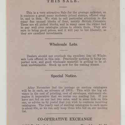 CAT, STAMPS, 1917, NY. CO-OPERATIVE EXCHANGE, 72ND SALE, 25 PP. 6" X 9"